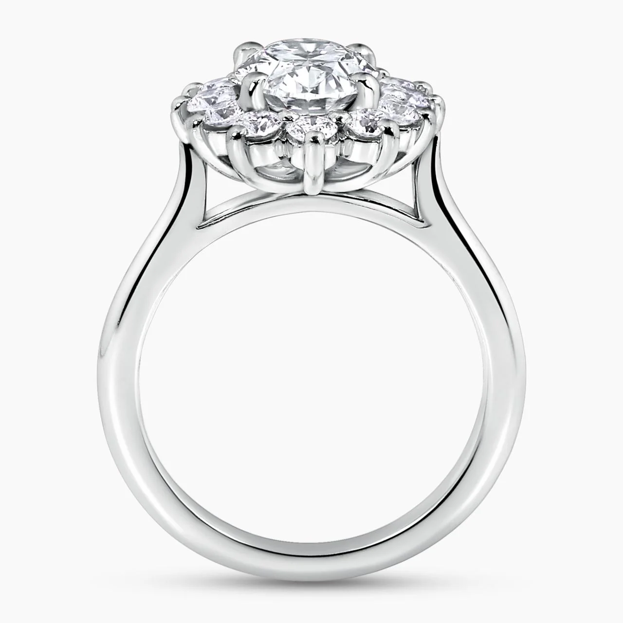 18ct white gold 1.59ct oval and round brilliant cut diamond halo engagement ring