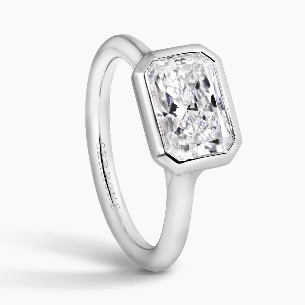 18ct white gold 1.94ct elongated radiant cut LAB Grown diamond bezel set solitaire engagement ring