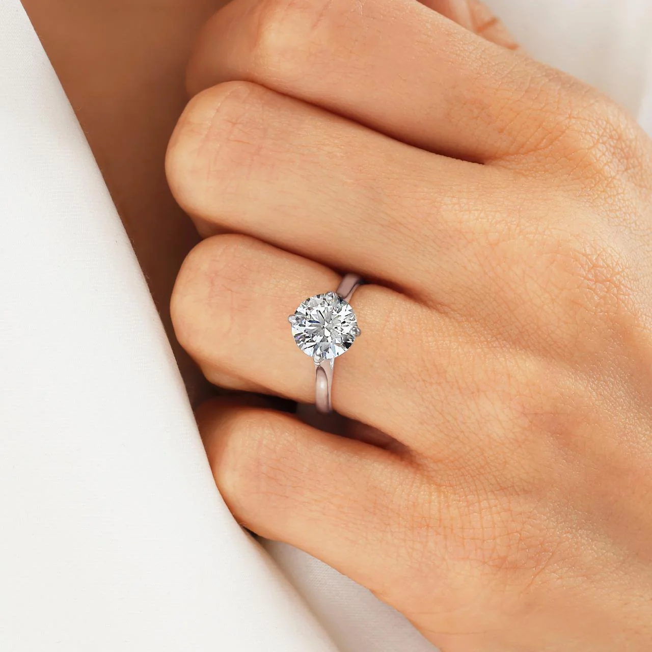18ct white gold diamond solitaire engagement ring features 2.01ct E VS1 round brilliant cut diamond in a four claw setting. Ring size I1/4. 2.00mm band width Item weight is 3.66 grams. GIA Cert 1182286969